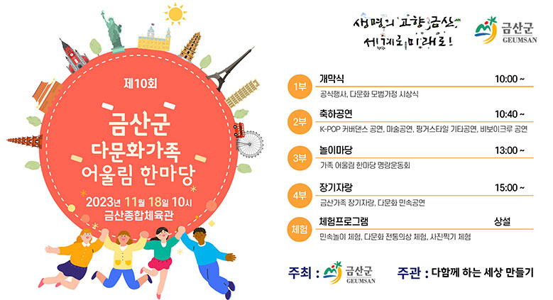[충청남도-금산] 금산군 다문화가족 어울림 한마당 입장료 장소 기간 이용시간 한방에 정리휴렌드(여행친구) 2023. 11. 10. 10:59