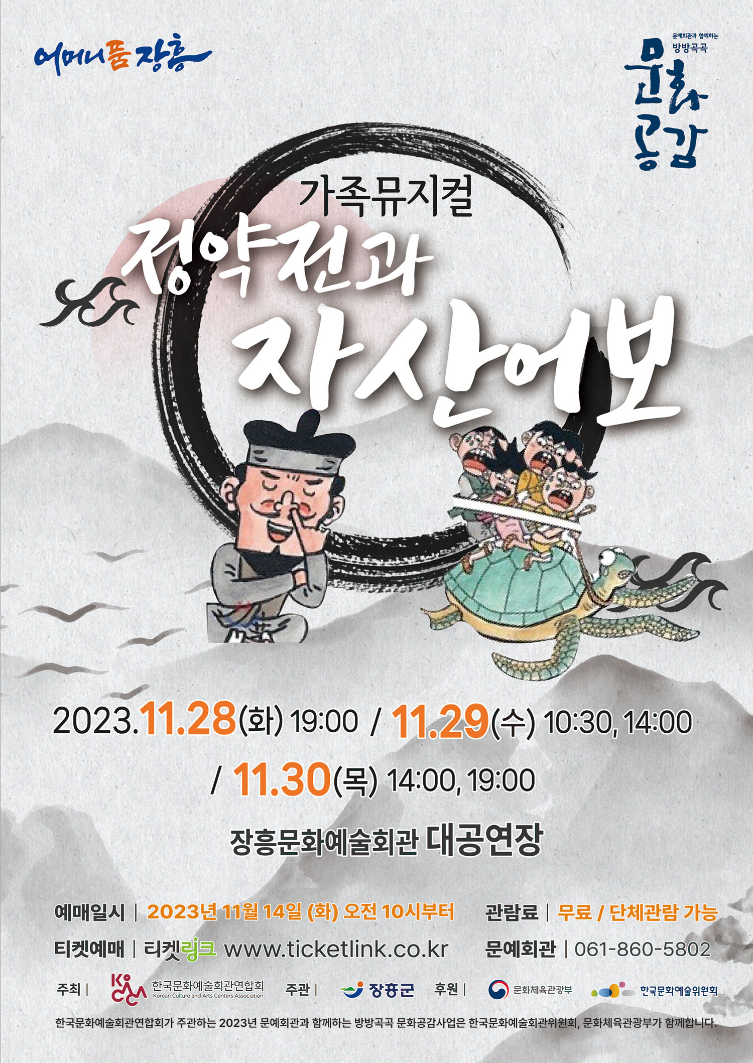 전라남도 장흥 주민분들께 즐거운 소식이 있습니다. 가족뮤지컬 정약전과 자산어보를 장흥문화예술회관 대공연장에서 무료로 관람 하실 수 있는 방법을 소개하겠습니다.